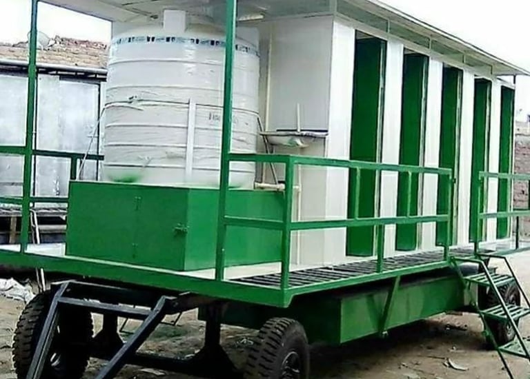 FRP mobile toilets and guard cabins for convenience.